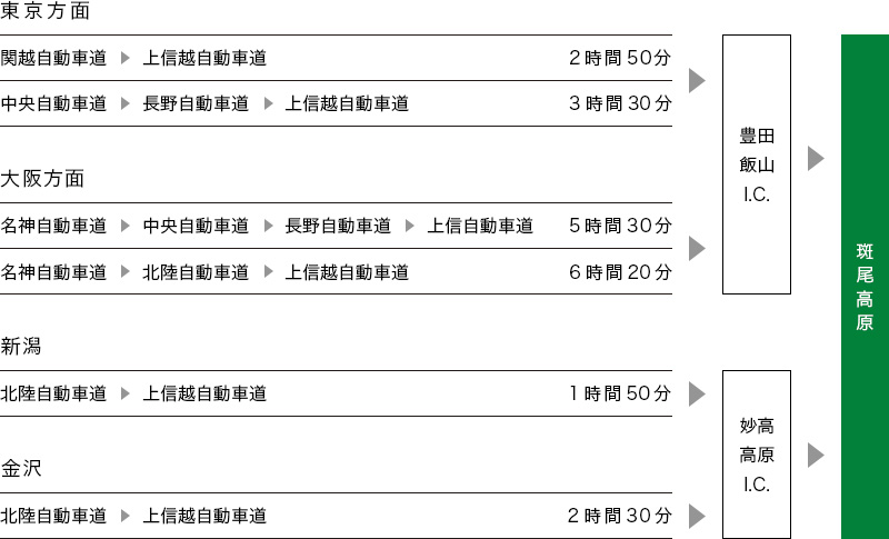 | Location | Traffic Access by Train from Tokyo to Madarao 1.Tokyo – Iiyama by Hokurikushinkansen Bullet Train (1hour 30 minutes) 2.Iiyama- Madarao by Local Community Bus or Taxi (30 minutes) A trip of total 2 hours and a half from Tokyo. |